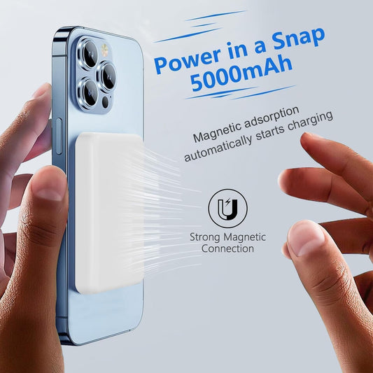 Batterie Externe Magnétique Power Bank sans Fil 5000mAh, PD 20W Charge Rapide Power Bank avec USB-C Entrée Chargeur Portable Compatible iPhone 16/15/14/13/12/Pro/Pro Max (Blanc)