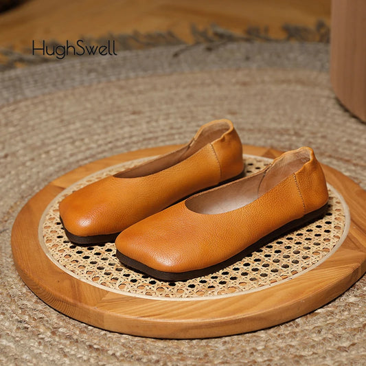 Mocassins plats en cuir véritable pour femmes