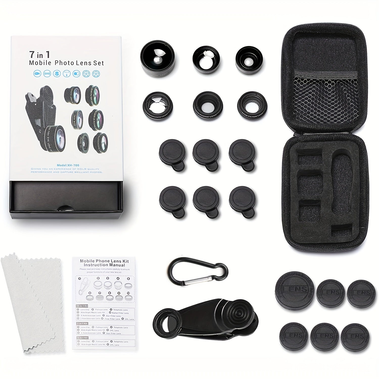 7-in-1 Professional Phone Camera Lens Kit - Capture Breathtaking Moments with 198° Fisheye, 15X Macro, 0.63X Wide Angle, 2X Long Focal, CPL, Kaleidoscope, and Starburst Lenses - Compatible with iPhone 11/12/13 and Samsung/An